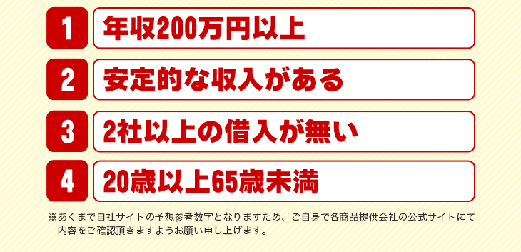 ※年齢18歳以上、74歳以下のご本人に安定した収入のある方、当社基準を満たす方